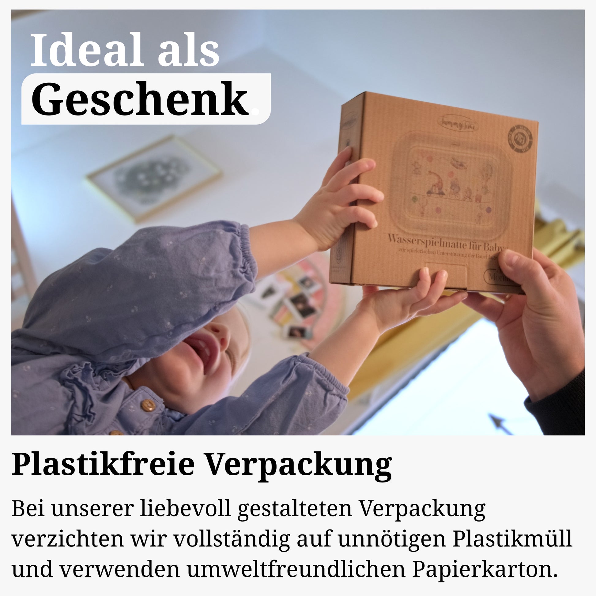 The packaging of our water play mat is lovingly designed and therefore the perfect gift for a birth, baptism, Easter or Christmas for girls and boys.